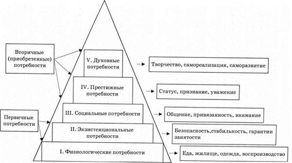 Согласно пирамиде А.Маслоу потребности располагаются в восходящем порядке, от «низших» к «высшим» рис. 2.1.