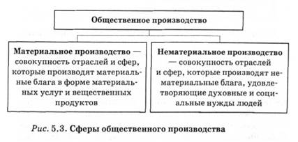 Поскольку результатом процесса общественного производства является создание материальных и нематериальных благ" то структурно оно делится на две больших сферы: материальное и нематериальное производство (рис. 3.3).