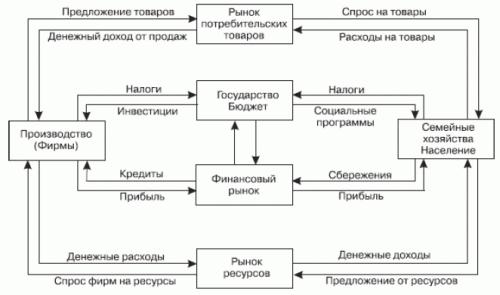 В результате связь между фирмами и семейными хозяйствами осуществляется через финансовые рынки. На финансовые рынки поступают сбережения семейных хозяйств, а фирмы приобретают эти сбережения за соответствующую плату в виде процента, дивиденда на акции или части прибыли при непосредственном вкладе средств в фирму.