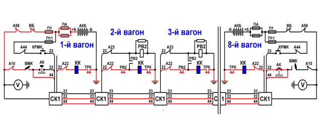 Схема работы М/К с вкл. АК в хвостовом вагоне.