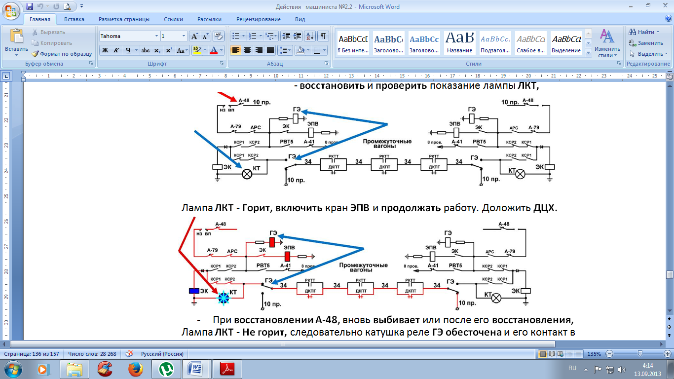 Если после восстановления А-48, лампа ЛКТ – не горит, следовательно катушка реле ГЭ обесточена и его контакт в цепи лампы КТ разомкнут.