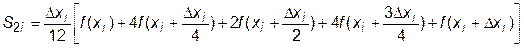Сокращение общего количества вычислений может быть достигнуто также за счет того, что две формулы для расчета S1i и S2i используют значения подинтегральной функции в нескольких общих точках. Например, для формулы Симпсона S2i требует вычисления в пяти точках, три из которых используются при расчете S1i, и поэтому достаточно вычислить только два новых значения функции f(x).