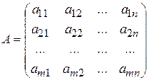 Матрица – это математический объект, записываемый в виде прямоугольной таблицы элементов, и являющийся совокупностью строк и столбцов. В общем случае матрица имеет вид