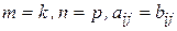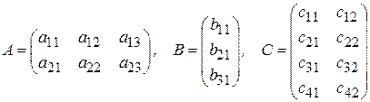, если число столбцов матрицы А равно числу строк матрицы В, т.е. если n = k. Следует заметить, что если матрица А согласована с матрицей В, то это не означает, что матрица В согласована с матрицей А. Взаимное согласование существует только для квадратных матриц одинаковых размеров.