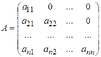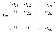 Квадратная матрица называется треугольной, если все элементы, расположенные по одну сторону от главной диагонали, равны нулю. При этом матрица вида