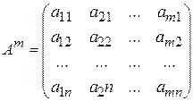 Матрица, полученная из данной матрицы А заменой каждой ее строки столбцом с тем же номером, называется транспонированной к матрице А и обозначается А т. Если