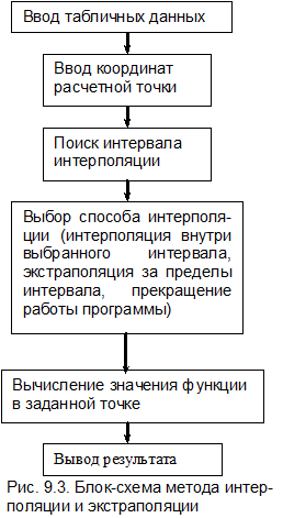На рис. 7.6 приведена блок-схема адаптивного алгоритма вычисления определенного интеграла методом средних прямоугольников. В начале программы в качестве шага интегрирования выбирается длина всего диапазона интегрирования. Далее по двум формулам с целым и половинными шагами рассчитываются значения интеграла на участке шириной D x.