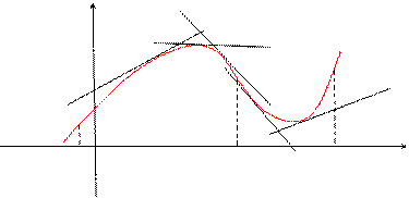 Определение. Мы говорим, что кривая обращена выпуклостью вниз на интервале (b, с), если все точки кривой лежат выше любой ее касательной на этом интервале.