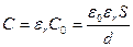 Таким образом, относительная диэлектрическая проницаемость есть отношение емкости конденсатора с данным диэлектриком к емкости конденсатора тех же размеров, если бы между обкладками находился вакуум. Емкость конденсатора с диэлектриком можно выразить: