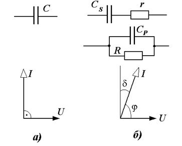 Рис.2.3. Схема замещения диэлектрика без потерь (а) и с потерями (б).