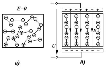 Рис.2.4. Расположение диполей в неполяризованном (а) и поляризованном (б) диэлектрике