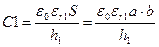 Здесь S=a·b — площадь граней, к которым подводится напряжение, м2; h 1— толщина первого слоя диэлектрика, м;.