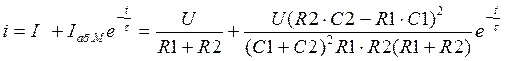 Изменение тока во времени в неоднородной изоляции показано на рис.2. Зная зависимость тока утечки i от времени t, можно найти значение сопротивления R изоляции как функции времени: