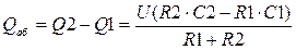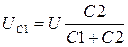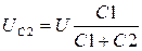 При синусоидальном напряжении в двухслойном диэлектрике, если пренебречь токами утечки через резисторы R1 и R2, напряжения на слоях обратно пропорциональны емкостям слоев: