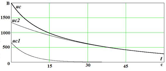 Напряжения саморазряда на отдельных слоях изоляции и на всей изоляции после отключения ее от источника напряжения U будут изменяться по закону затухающей экспоненты:
