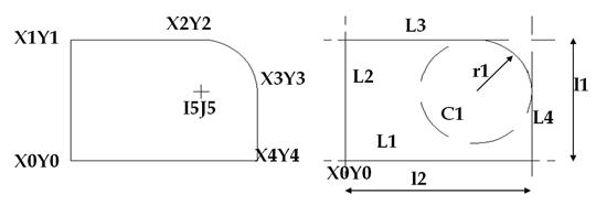 Обозначения в командах: Line – прямая линия, Arc – дуга окружности,