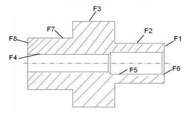 СЛМ указывает последовательность выполняемых технологических преобразований и взаимосвязь между этими преобразованиями и приобретаемыми свойствами деталей. В данном случае обрабатываемые поверхности с выполняемыми технологическими переходами. На чертеже через F1 – F8 обозначены обрабатываемые поверхности. СЛМ обработки выглядит следующим образом: