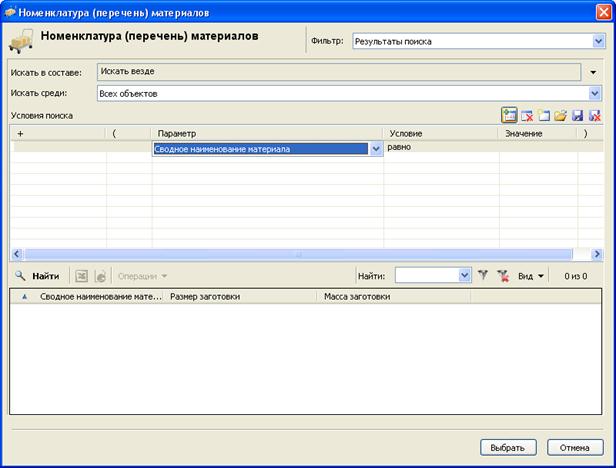 Затем можно выполнить либо ручной поиск оснащения, либо использовать вторую ступень фильтра. Фильтрация второй ступени выполняется с помощью специальных клавиш. При этом открывается окно для ввода ключевых символов, по которым система будет выполнять автоматический поиск оснащения (клавиша «Бинокль»). Ключевые символы должны быть выделены слева и справа с помощью *.