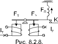 Для отстройки от токов небаланса получили распространение так называемые дифференциальные реле с торможением. Ток срабатывания у таких реле возрастает с увеличением тока внешнего КЗ. Принципиальная схема конструкции такого реле изображена на рис. 8.2.8.