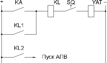 Параллельное включение. Основные выходные реле: РП–23, РП–24. Реле, обладающие большим быстродействием: РП–211, РП–212 – 0,01...0,02 с. Обычно время срабатывания промежуточных реле от 0,02 до 0,1 с.