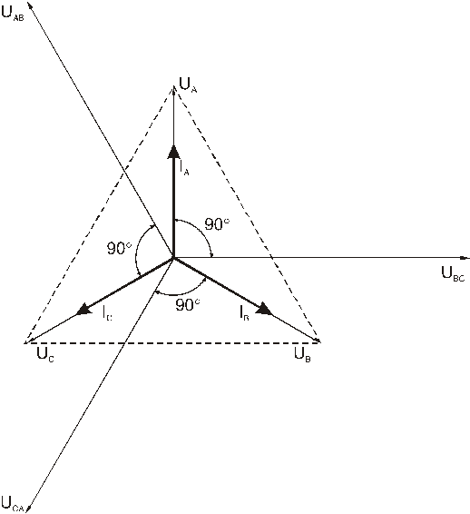 На рис. 7.4.3 и 7.4.4 представлены векторные диаграммы для 90° и 30° схемам соответственно.