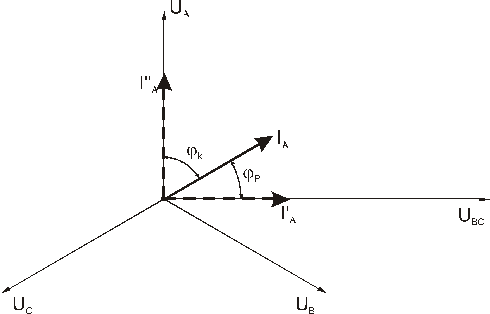 Ток IA отстает от UА на jk – определяется активным и реактивным сопротивлением линии от шин до точки КЗ и влиянием активного сопротивления дуги, (рис. 7.4.5):