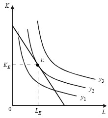 y 1, y 2, y 3 – изокванты; E – точка оптимума.