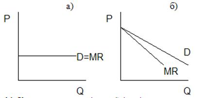 Рисунок 34.1 – Кривая спроса и предельный доход при совершенной и монополистической конкуренции