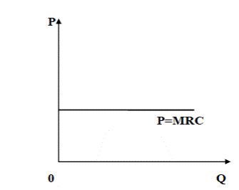 На совершенно конкурентном рынке факторов производства цена ресурса постоянна. Поэтому на графике линия MRC имеет форму прямой, параллельной оси абсцисс и MRC=P (рис.36.3).