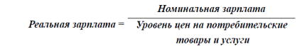 Реальная заработная плата выражается в том количестве товаров и услуг, которые могут быть куплены на номинальную заработную плату. В реальной заработной плате проявляется покупательная способность номинальной заработной платы, а сама эта покупательная способность находится в прямой зависимости от величины номинальной заработной платы и в обратной - от уровня цен на потребительские товары и услуги.