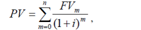 где: PV – текущая стоимость; FV – будущая стоимость; i- ставка процента, в долях; m- количество лет.