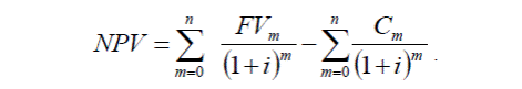 Чистая приведенная стоимость (NPV – net present value) – это дисконтированная стоимость всех будущих доходов за вычетом дисконтированной стоимости всех издержек (вложений капитала), формула 38.2.