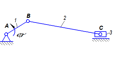 Заменяя в шарнирном четырехзвеннике одну вращательную пару на поступательную получим кривошипно-ползунный механизм (Рис. 1.14) и кулисный механизм (Рис. 1.15).