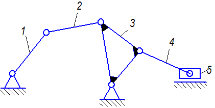 Так как после присоединения ведомых звеньев 2,3,4 и 5 число степеней подвижности всего механизма осталось равным