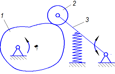 Прямолинейно движущееся выходное звено кулачкового механизма называется толкателем, а качающееся – коромыслом.