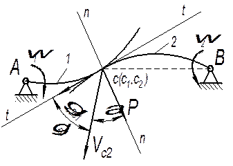 Пусть звено 1 (Рис. 2.8) со звеном 2 образуют высшую кинематическую пару в точке касания С.