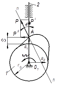 При этом на звено 2 действует сила Р направленная по нормали n-n (т.е. сила трения между звеньями не учитывается, в случае учета реакция отклонится на угол трения).