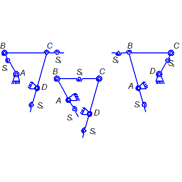 . Для удовлетворения условия (4.9.) необходимо, чтобы общий центр S масс механизма находился на прямой AD, либо между точками А и D, либо за ними. В этом случае центр S масс механизма при его движении будет оставаться неподвижным и, следовательно, главный вектор сил инерции механизма будет уравновешен.