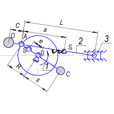 Радиусы s и с противовесов выбираются произвольно. После установки противовесов центр масс механизма во всех его положениях будет совпадать с точкой О и, следовательно, будет во всё время работы оставаться неподвижным. Таким образом, два противовеса