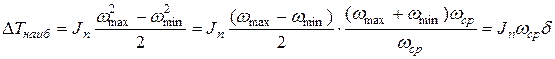 По этой формуле может быть определен приведенный момент инерции механизма при заданной нагрузке, ωср и δ. Как видим, для совершенно равномерного движения звена приведения (δ=0)