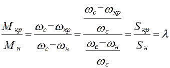 С достаточной для практики точностью можно принять, что устойчивая часть механической характеристики асинхронных двигателей прямолинейна, тогда (рис. 4.9) из подобия треугольников имеем: