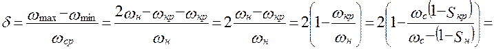 Исходя из данных механической характеристики асинхронного электродвигателя (рис. 4.10), можно установить математическую связь между номинальным скольжением ротора электродвигателя и коэффициентом неравномерности движения машины.