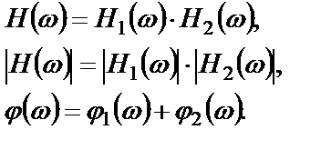 Таким образом, для каскада из двух систем при отсутствии между ними нагрузки или обратной связи амплитудные частотные характеристики перемножаются, а фазовые частотные характеристики складываются.