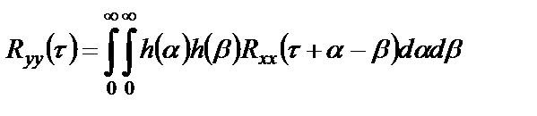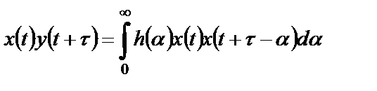 Аналогичные вычисления проведем и для произведения мгновенных значений выходного процесса системы в два различных момента времени: