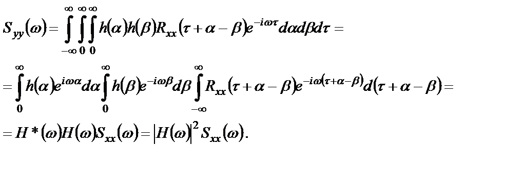 Таким образом, основные спектральные соотношения для идеальной системы, связывающие между собой спектральные плотности на входе и выходе системы, имеют вид: