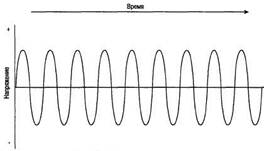 Основное различие между аналоговыми и цифровыми сигналами заключается в самой структуре сигнального потока. Аналоговые сигналы представляют собой непрерывный поток, характеризующийся изменениями частоты и амплитуды. Это означает, что форма аналогового сигнала обычно похожа на синусоиду (т.е. гармоническую волну), представленную на рис. 1.1. Зачастую на иллюстрациях, изображающих гармоническую волну, весь сигнал характеризуется одним и тем же соотношением частоты и амплитуды, однако при графическом представлении сложной волны видно, что такое соотношение изменяется в зависимости от частоты.