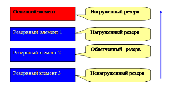 По степени нагрузки резервных элементов различают нагруженный, облегченный, ненагруженный и смешанный по нагрузке резерв.