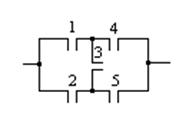 Система будет работоспособной, если не появляется ни один из вариантов минимальных сечений. Анализируется вторая вспомогательная схема с последовательным соединением минимальных сечений (рис.30) (элементы минимальных сечений соединяются параллельно).
