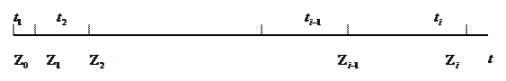 наблюдались события (Рис.1), соответствующие моментам обнаружения ошибок в программе. Интервалы времени между моментами появления событий обозначим символами