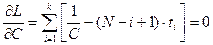 необходимо взять частные производные по неизвестным, приравнять их нулю и решить полученную систему уравнений. Однако, удобнее предварительно прологарифмировать выражение (27):